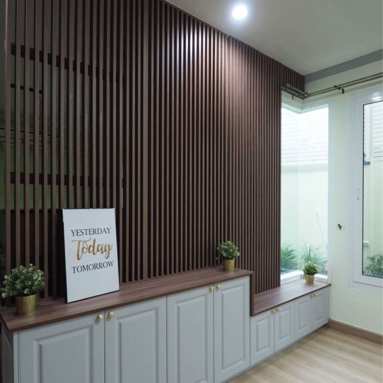 ตกแต่งผนังด้วยไม้เซาะร่องระแนงไม้ระบบคลิกล็อคไร้รอยต่อระหว่างแผ่นให้ความรู้สึกเสมือนไม้จริงด้วยผิวสัมผัส ลวดลายและสีของวัสดุอีกทั้งติดตั้งง่ายได้ด้วยตนเอง